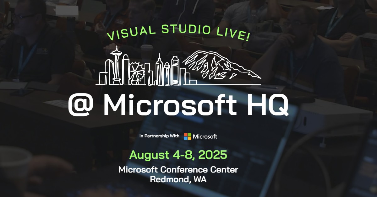 I’m excited to announce that I’ll be keynoting VS Live! Redmond 2025, August 4–8 at the Microsoft Conference Center—and I’d love for you to join us.