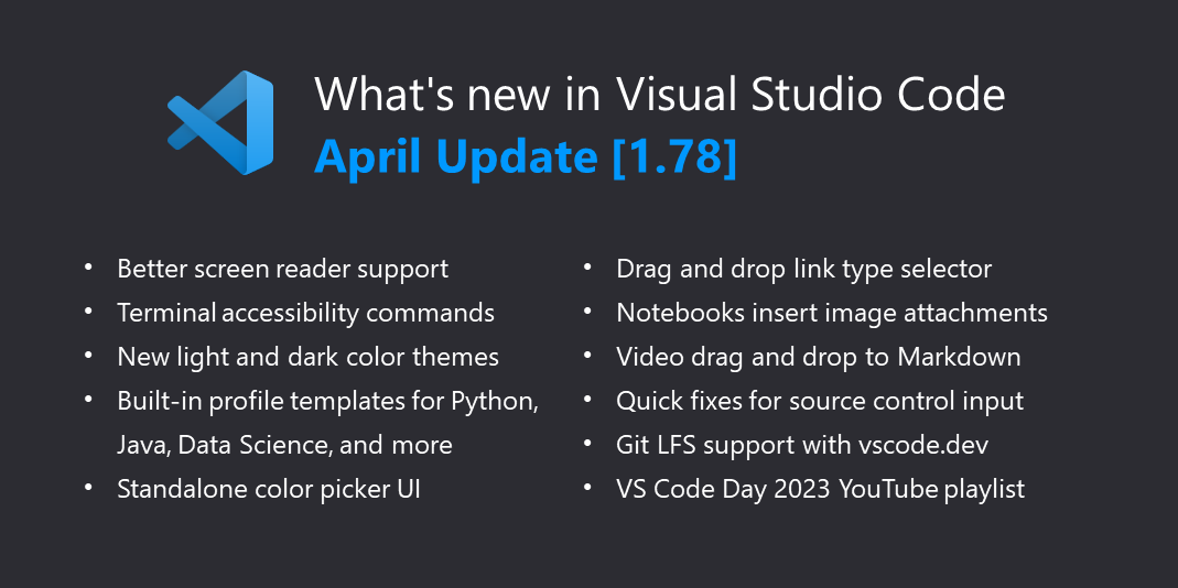 Welcome to the April 2023 release of Visual Studio Code. There are many updates in this version that we hope you’ll like, some of the key highlights include: